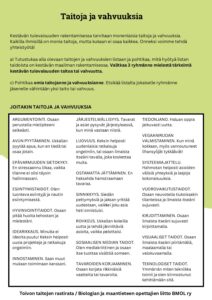 Taitoja ja vahvuuksia -tehtävä