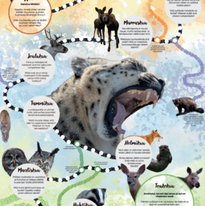 Talven tarpojat on juliste, jota voi pelata myös lautapelinä. Peli johdattelee talven läpi tutustuttaen pelaajat eläinten talvehtimiseen ja oman luontosuhteen pohdiskeluun eläinpuiston eläinesimerkkien kautta.