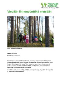 Tekoja metsäluonnon hyväksi! Täältä löydät ohjeet linnunpönttöjen ripustamiseen ja metsään vientiin. Sopii hyvin kerhotoimintaan.